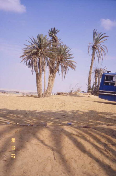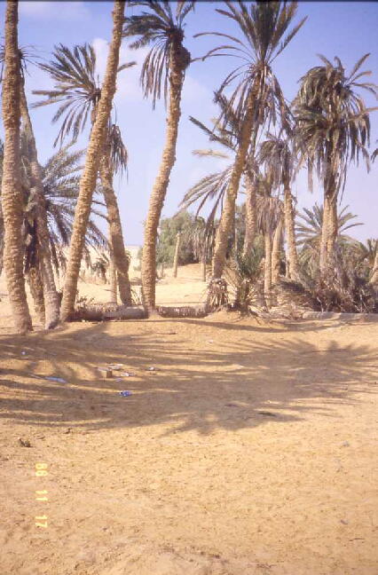 け、此処に辿り着くと何と今まで無かった「なつめやし」が群生し、近くにはベドウィン(遊牧民) の小屋が散在している、正しく砂漠の中のオアシスの感じである。荒野を旅したイスラエルが 漸く得た水は苦くて飲めなかった。モーセは一本の木の枝を投げ込んだところ、その水は甘く なったという歴史の場所である。最近は枯れてしまったが、此処に泉があったとされる窪地を 囲んで河谷氏のガイドを承った。