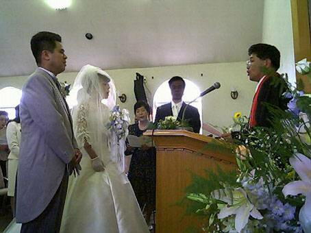 ☆☆☆ 午後 教会会堂で、遠藤明広兄、湯沢佳恵姉の結婚式が土居良史牧師の司式で行