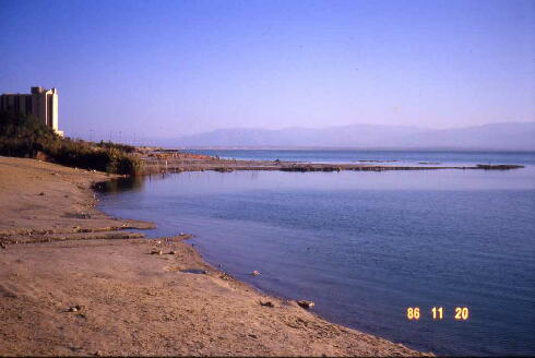 がどのようにして昼の休息をしたかの実演を河谷氏と後藤師がやって見せてくれた。傘アカシ ヤの木の下に寝そべってポーズをとる後藤師に向かって河谷氏曰く「彼らはすこしやつれ、く ずれた恰好で寝そべるのですが後藤師は丁度よい役者です」とやったので大笑い。正に髭面 の後藤師は最適の遊牧民演技者だった訳である。エンゲデはダビデがサウロを逃れて隠れた 野の一つ(サムエル記T 24章)。この辺はまたダビデの詩にある谷間の鹿が多く出没する所だ という。正しく時折崖の上に鹿がじっとこちらを見ている光景に出会う。もちろん野生の鹿(雅歌 1:14)で政府の保護政策で最近は数も増えてきているとか。この近くにはまたダビデの滝もある という。死海も北上すると何となく海に似て打ち寄せる波が目立つ。これは死海南端のソドムで ![]() ![]() ![]() ![]()
