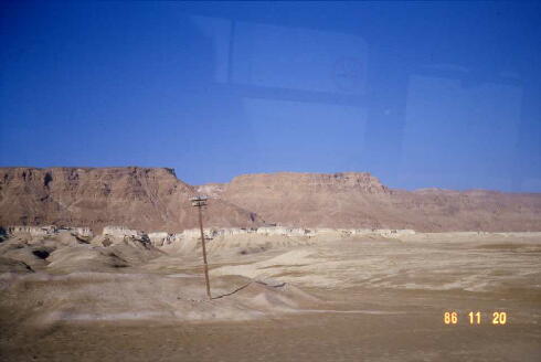 海の水を北から南は送っている。工業用水、その他で死海の水位も年々低くなっていくらしい。 崖にそそり立つ巨大な岩塊や大小さまざまな石も地震が少ないため落石の危険はまずないと の事だ。