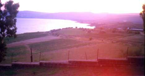 ダラ人のの地、ガリラヤ湖周辺は静かに一日を閉じようとしていた。その光景の美しさは譬え ようがない。主の伝道されたガリラヤ湖周辺はナザレ、カナから通ずる湖岸のマグダラ、そして カペナウムまで大人の足で歩いて3、4時間というほんの一掴みの区域であったということであ る。そして今も残っている町はテベリヤしかないとの事である。しかし主のテベリヤ伝道の記録 は聖書にないと語られた。昔のカペナウムは交通の要衝地であり漁業の町であり、また良質 の玄武岩産地であり石工の町として栄えたが今は主の予言通り廃墟の町と化してしまったと言 われる。