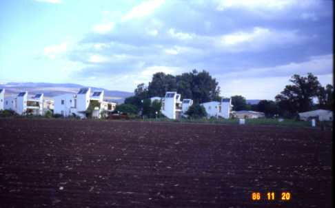 派ホテルもあるとの事、私たちは指定された464号へエレベータで上った。イスラエルへ来て 感謝ことは食事がバイキング形式であることだ。これなら自分の口に合うものを自由に選ぶ事 ができる。とは言え、パンはどこまでもパンで私の場合は握りこぶし大のパン一個、後は専らト マト、卵、ジュース、野菜サラダで、肉、チーズ、ヨーグルト、コーヒー類は素通りである。だから 日本のような満腹感はない。食後ビデオで日本語版のキブツ紹介を見学。終わって質問は? の声に誰も無言なので私は手を上げた。河野師が「あまり難しい質問はしないで下さいよ」と笑 いながら通訳してくれた。私の質問は、