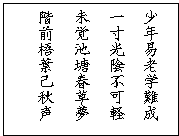 人は年をとるのが速く、学問を修めるのは難しい。だからちょっとの時間でも軽視してはいけ