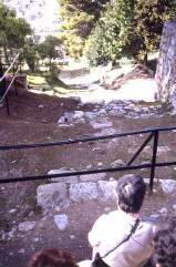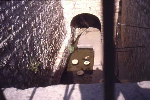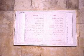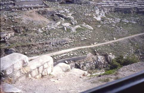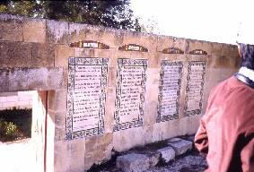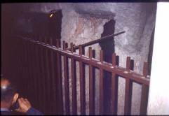 行く。途中、オリーブ山麓のアブサロムの墓、ザカリヤの墓を車窓から眺めてシロアムへ。此 処はダビデの町の一角にあり細長い用水の感じである。奥にトンネル式の水路が続いており、 それはギホンの泉につながっていると言われ、ヒゼキヤがアッシリヤの王セナケリブの攻撃を 受けたとき、水の確保の為に水道を掘った由緒あるものだそうだ。 ![]()