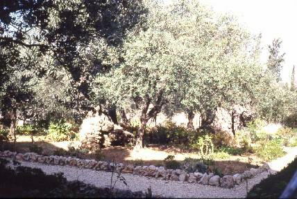 具合から見て大変な老木である事が分かり(イエス時代のものと言われる)威圧感と厳粛感を 感じさせられる。例によって河谷氏の聖書朗読とガイドがある。此処で読むゲッセマネの苦祷 は迫力と現臨感がある。みなそれぞれ写真を撮っていた。今はこの程度のオリーブの木しか ないが昔は全山みなオリーブであったろうと言われる。オリーブの木は枝同士が当たると枯れ るので充分間隔を開けて生えているとの事だ。 ![]()