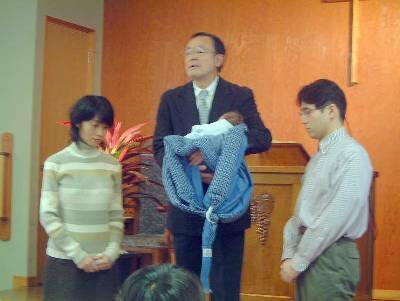 *礼拝のメッセージの後、11月に生まれた松野智理(とものり)くんの祝福祈祷がありました。