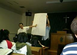 教会通信 盛岡聖泉キリスト教会 ☆盛岡JSF《8月》活動報告 8月の定例活動日は31日(日)でした。今月は9月3−4日に迫った「三浦光世講演会」のた めの準備をしました。まずは、いつものように、小さな祈り会をもち、講演会の準備・当日の動 き・集会後のフォローアップの働き、その一切に神様のお守りがあり、ご栄光が現れますように と、祈りました。その後、当日いらした方々に配布するものを折り込む作業にかかりました。三 浦光世さん、綾子さんのプロフィールと三浦綾子読書会の予定を掲載したものに、ゴスペルの 案内や三浦綾子記念文学館の館報、東京でのイベントのお知らせ、アンケート用紙など数種 類のものを挟んで、1500部ほど用意しました。作業の合間に美味しい飲み物・食べ物を食べ てもうひと頑張り!1500部終わった頃には、斉子師より「から揚げ」と「おにぎり」の差し入れ を頂いて、楽しい作業を終えました。みんなで力をあわせて、一つのことに打ち込むのは実に 楽しいことです。まさに御霊による助けを実感したときでした。 9月14−15日は日曜日と祝日の連休を利用して、JSF主催キャンプを行いました。以前何 年か続けて、一泊旅行をしましたが今年は久しぶりにそれが復活したわけです。今年は男性 の担当者がキャンプにチャレンジし、市内から40分ほどの温泉地にある手ごろな施設を見つ けてきてくれました。ログハウスとトレーラーハウス(コテージ)の宿泊所に隣接して温泉施設が あります。バーベキュウの設備も整っていて、とても快適なところでした。いつもどおり、午後の プログラムが終了し、各地域集会の場所から集まりましたので、バーベキュウの開始はすっか り暗くなっていました。でも、いっぱい食べて、いっぱい賛美して本当に楽しい時を満喫しまし た。その後、温泉で疲れをとり就寝。翌日は、朝食後、おのおの用意されたわかめご飯でおに ぎりを握りました。大小、形もさまざま・・・。それから、県境をこえて、秋田県田沢湖町に入り、 駒ケ岳登山組と鶴の湯温泉組に分かれてそれぞれに素晴らしいお天気のもと山の自然を楽し みました。事故過ちもなく楽しい時として下さった神様に心から感謝をささげます。(文責:原田 陽子) 仙台聖泉キリスト教会 ◇8月31日は野外礼拝を持ちました。例年ですと、国立みちのく湖畔公園で行われるのです が、今年は、冷夏で、あげくに雨が続きました。この日もあいにくの雨で、集会は礼拝堂で持ち ました。石井行雄兄が、ぶどうの木の例話を通して、「御霊の実を実らせましょう。」とお勧めが ありました。 その後の炊飯は、教会の駐車場で行いました。いつもはたくさん入っている車を 道路に出し、駐車場は一変してバーベキュー会場に早変わりです。教会学校のクラスごと、 ![]() それぞれステーキだったり、サンマだったりと、仙台のど真ん中とは思えないひと時でした。最 後は、山形県尾花沢のスイカを並べて、みんなでスイカ割り大会。「どこででも、みんなでやれ ば怖くない!」そんな楽しい一日でした。 ![]() ![]() ![]() ◇9月14−15日は、恒励会・婦人会の旅行会があり、10名が参加しました。今年は、遠刈 田温泉と秋保でした。素晴らしいホテルで、夕食は2時間かけての会席料理。きれいなお庭と 露天風呂。しばしいつもの忙しさを忘れ、ゆっくりとした時間を過ごされたようです。夜は皆さん のお話が盛り上がり、夜中の12時過ぎまで良き交わりの時を持ったそうです。 ![]() ![]() ![]() ![]() って来ました。楽しかったお土産話は、その夜遅くまで続きました。(文責:山本盡子) 東京ミレニアム・チャーチ 婚約者である朴鐘順姉妹の両親と2番目のお姉さんが、結婚式出席のため9月5日(金)に 来日しました。9月18日(金)から20日(土)までは、私の故郷である岩手を訪問予定です。 また、新居は下記に決まり、9月22日(月)に引っ越し予定です。(これが、東京ミレニアムの 新連絡先となります。) 〒359−1133 埼玉県所沢市荒幡909−1−210 042−939−8470 結婚式は9月27日(土)、新婚旅行は9月30日(火)から10月17日(金)(行き先はヨーロッ パ)の予定です。 (文責:長谷川与志充) 中京聖泉キリスト教会 8月4日 礼拝堂カーペットと教会キッチンの張り替え工事をして、きれいな礼 拝堂になりました。【写真:秋山主輝】 ![]() 席して、27名。 8月31日 初心者歓迎礼拝「そこに必ず意味がある」 音楽ゲスト米田浩司さん【写真:秋山直光撮 影?】ギター弾き語りの賛美とひきこもりの青春時代からイエス様によって解放されたあかしをし ました。秋山牧師のショートメッセージがあった。出席36名。 ![]() 9月23日 災害時緊急支援セミナー (会場:名古屋YMCA) 教会から山田義兄と秋山應子姉が出席しました。予想される東海地震などに教 会の取るべき対策を学びました。 (文責:山田義)