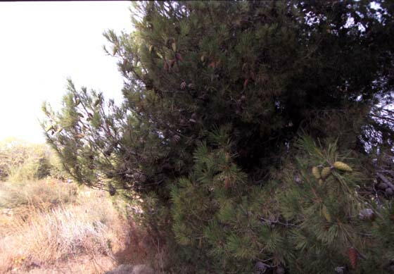 写真と斜体の解説文は、廣部千恵子氏のホームページ「聖書の植物」から同氏の許可によ り掲載。詳細はホームページ、 http://www2.seisen-u.ac.jp/~hirobe/2002tree8.htm#k8 または、「新聖書植物図鑑」(廣部千恵子著、横山匡写真、教文館発行)をご覧下さい。 ![]() かけ、桧も共に植える。」(イザヤ41:19) アレッポマツはかつて聖地にかなり沢山自生していた。今でも石灰岩やレジナ土の所に自生し ているし、植林もされている。大きくなると20mにもなり、樹齢も100〜150年になる。光を好 み、枝を水平に伸ばすが、上の枝が覆い被さると下枝は枯れてしまう。2対の針状葉が集まっ た常緑樹で、花は松かさの中にあり、雄花は低い枝に、雌花は高い枝に生える。黄色いほこり のような花粉が風で飛び散り、受粉する。受粉後実が出来るまでに15月かかる。長い翼のつ いた種は熟すと松かさが開いて出る。地中海性の松でアフリカ北部にも自生する。