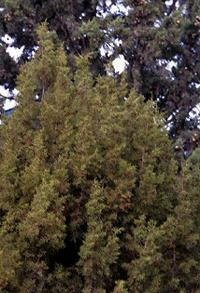 写真と斜体の解説文は、廣部千恵子氏のホームページ「聖書の植物」から同氏の許可によ り掲載。詳細はホームページ、 http://www2.seisen-u.ac.jp/~hirobe/2002tree9.htm または、「新聖書植物図鑑」(廣部千恵子著、横山匡写真、教文館発行)をご覧下さい。 ![]() 川沿いの町、すなわちアルノン河畔のアロエルからギレアドに至るまで、我々の手に陥らなか った町は一つもなかった。そのすべてを我々の神、主は我々に与えられた。(申命記2:36) 主はこう言われる。呪われよ、人間に信頼し、肉なる者を頼みとし その心が主を離れ去ってい る人は。彼は荒れ地の裸の木。恵みの雨を見ることなく人の住めない不毛の地 炎暑の荒れ 野を住まいとする。(エレミア17:5〜6) 杉と書かれているところでレバノンに関係ないもの、ことに清めなどの関係で出てくるものは、 フェニキアネズの場合も考えられる。その他にも上記アロエルおよびエレミアの裸の木と訳さ れているアルアルはアラブの幾つかの国でネズミサシ属の植物に対してアルアルと呼んでいる からとZoharyが述べているのでここに記載したが、はっきりとはしない。フェニキアネズは5m 以下の低木で上の方で枝分かれしている。葉は小さな燐片状の小葉である。単性花で雄花は 尾状花で、雌花は少しの燐片からなっている。