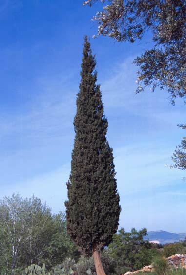写真と斜体の解説文は、廣部千恵子氏のホームページ「聖書の植物」から同氏の許可によ り掲載。詳細はホームページ、 http://www2.seisen-u.ac.jp/~hirobe/2002tree9.htm または、「新聖書植物図鑑」(廣部千恵子著、横山匡写真、教文館発行)をご覧下さい。 ![]() 「ツロの王ヒラムが、ソロモンの要請に応じて、杉の木材、もみ(糸杉)の木材、および、金をソ ロモンに用立てたので、ソロモン王はガリラヤの地方の二十の町をヒラムに与えた。」(列王記 T9:11) 「そこに、鳥は巣をかけ、こうのとりは、もみ(糸杉)の木をその宿としています。」(詩篇104:17) そヒノキ科イトスギ属の針葉樹でヨーロッパ南部原産である。暖地でよく生育し、枝からイトスギ 油が採取され、香料や咳どめになる。聖書のベローシュをイタリアイトスギに限定する説もある が、M. Zoharyはイタリアイトスギ、マツ科モミ属のキリキアモミAbies cilicica(Cilician fie)および ヒノキ科ネズミサシ属のJuniperus excelsa(Eastern Savin)の3つの植物の総称であると言って いる。彼はベローシュがことにレバノン杉と一緒に出てくる時にはキリキアモミであろうとしてい る。このモミはレバノンでレバノン杉とともに生育している。しかしレバノンのその辺りにはイタリ アイトスギは生育していない。このイタリアイトスギはガリラヤに少し、ヨルダンのエドムにある。 かつてはユダ山地にもあったことが、花粉や家具や建物の発掘によって証明されている。エル サレムなどにも今は植林されている。またヒノキ科ネズミサシ属のJuniperus excelsaもレバノン のセニール山(ヘルモン山)に現在生育している。そこで、エゼキエル27:5の「彼らはセニル の檜でお前の外板を造りレバノンの杉で、帆柱を立てた。」はこの植物であろうし、逆にレバノ ン杉といっしょに出て来ないベローシュはこのイタリアイトスギと考えてよいかもしれない