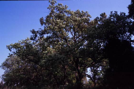 写真と斜体の解説文は、廣部千恵子氏のホームページ「聖書の植物」から同氏の許可によ り掲載。詳細はホームページ、 http://www2.seisen-u.ac.jp/~hirobe/2002tree10.htm または、「新聖書植物図鑑」(廣部千恵子著、横山匡写真、教文館発行)をご覧下さい。 ![]() アブラムはその地を通り、シケムの聖所、モレの樫の木まで来た。当時、その地方にはカナン 人が住んでいた。(創世記12:6) ![]() 但し、創世記35:4の記載「人々は、持っていた外国のすべての神々と、着けていた耳飾りを ヤコブに渡したので、ヤコブはそれらをシケムの近くにある樫の木の下に埋めた。」の樫はヘ ブライ語がエラーとなっているのでテレビンの木である。 ![]() さて、聖地には樫の木が3種類ある。他の希少種についてはここで触れない。樫と聖書には書 いてあるが実際は分類的にはナラである。そのことを述べた上で、樫としよう。セイチガシ Quercus calliprinos(イスラエルではこのように言われているが、HepperはQ.cocciferaとしてい る)はごく普通の常緑の低木で、冬から早春にかけてはこの樫だけが葉がある。葉は卵形から 長楕円形で比較的小さく、皮のような光沢がある。葉の大きさは他の2種よりも小さく、2〜4x 1〜1.5cm位である。葉の縁は歯状で少し切れ込みが深く、葉の先はとげのように尖ってい る。通常は根元から枝分かれしている低木であるが、時には幹も太くなり、丈も高くなる。常緑 であるが、春先に新しい葉が出てくると落葉する。花は3〜4月に開花し、果実は12月頃に熟 す。沢山の雄花を尾状花序につけ、まばらに上に穂状花序についている雌花の下に垂れ下が っている。両花とも目立たないが、風で受粉する。堅果は他の2種よりも小さく、総苞は図のよ うになっている。聖書に出てくる樫は力,長命、誇り、堂々たる様子のシンボルのように述べら れているところではタボルガシQercus ithaburensis(Q.macrolepisまたはQ.aegilops)のように考 えられる。しかしセイチガシも所によってはかなり大きくなり、しかも常緑であるので、墓や礼拝 の対象としても使われる。その良い例がヘブロンにある樫の木である。アブラハムはマムレに 樫を植えた。今でもヘブロンの町はずれのギリシャ正教の教会の庭にセイチガシの大木が保 存されていて、アブラハムの樫の木と呼ばれている。