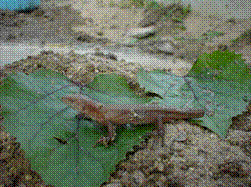 中京教会の庭で4月18日、秋山召くんが捕まえたトカゲの写真です。撮影:山田義