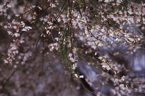 より掲載。詳細は同氏のホームページ ![]() ローテム、シロレダマRetama raetam マメ科Retama属 彼自身は荒れ野に入り、更に一日の道のりを歩き続けた。彼は一本のえにしだの木の下に 来て座り、自分の命が絶えるのを願って言った。「主よ、もう十分です。わたしの命を取ってくだ さい。わたしは先祖にまさる者ではありません。」彼はえにしだの木の下で横になって眠ってし まった。(列王記上19:4〜5) ![]() この聖書の箇所はエリヤがイザベルの魔の手を逃れてベエル・シェバから更に砂漠に入り込 んだ時の記載である。この辺りはシロレダマが沢山生えている。対応箇所は新改訳でもえにし だで、口語訳だけれだまになっている。 イスラエルに咲いている縁が紫がかった白の花のシロレダマとは異なる。ヨブ30:4にも同じ植 物が出てくる。あかざの葉を摘み れだまの根を食糧としていた。(新共同訳) 彼らはやぶの中のおかひじきを摘み、えにしだの根を彼らの食物とする。(新改訳) 彼らは、ぜにあおいおよび灌木の葉を摘み、 れだまの根をもって身を暖める。(口語訳) 新改訳はえにしだとなっているが、新共同訳は今度はれだまになり、口語訳ではれだまとなっ ている。これも前に述べたような理由で両方とも違う植物である。同じローテム(~t,r)というヘブ ライ語に対して、同じ聖書でも異なる訳を使用している。詩編120:4では勇士の放つ鋭い矢 よ えにしだの炭火を付けた矢よ。(新共同訳)勇士の鋭い矢、それに、えにしだの熱い炭火 だ。(新改訳)ますらおの鋭い矢と、えにしだの熱い炭とである。(口語訳)とすべてえにしだにな っている。これはローテムの炭のことを言っているのである。 |