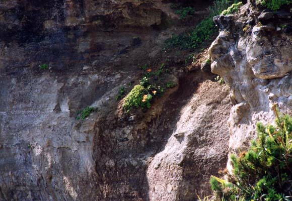 遊歩道から海岸を望む(3)・・断崖に花が咲いて・・
