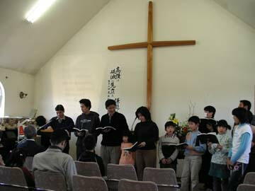 た。写真は 礼拝での 森教会特別讃美の様子です。 ![]()