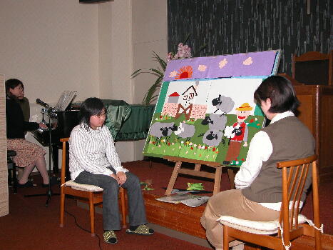 ない」迷子の羊のお話をフランネルグラフにしました。歌あり、ゲームありの楽しい集会になり ました。 ![]() ![]() ![]()
