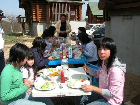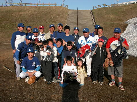 から揚げ、あっという間に3升のお釜が空になりました。野球部は10時からの練習にみな顔を 真っ赤にし、特訓を受けていました。お昼を食べてまた練習(>_<)雪が溶けるのが遅く、野球場 のネットが張っていなかった為に、ネット際は恒励会のメンバーがボールひろい、若い者の育 成のために活躍しました。2日目は、ほとんど全員参加のソフトボール大会。前の日の体の痛 いのを引きずりながらでしたが、大盛り上がりでした。またまたお昼を食べて、午後は自由参 加のサッカー。お父さんたちはほとんど動けない状態でした。(T_T)怪我もなく、無事1泊2日の 合宿を終えました。感謝しました。
