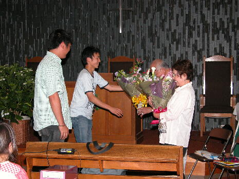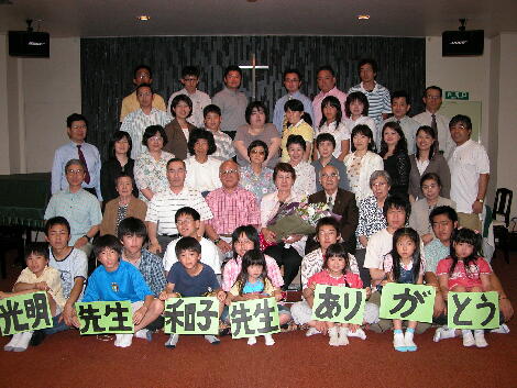 いた人、太っていた人、かわいかった人・・・楽しい時でした。その後、光明牧師、和子婦人伝 道師への感謝会を持ちました。今年度、教会総会に於いて、主任牧師が光明牧師から嘉納牧 師へと変わりました。そのことに伴い、この仙台の地で、40年御用して下さった両先生に感謝 の気持ちを表す会を持ちました。幼稚科、小学科の子供たちは、写真に手紙を添えて、賛美を プレゼントしました。JSFからは記念品が贈られました。恒励会、婦人会からは全家族の写真 がメッセージと共にアルバムに収められ、感謝と共に贈られました。両先生のその御奉仕に、 主が豊かに報いて下さるように祈りました。 ![]() ![]() ![]() ![]() ![]() ![]()