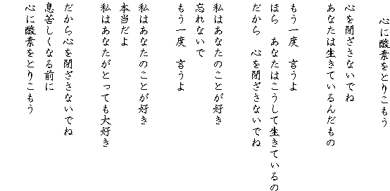 心を生かす酸素は・・もちろんイエスとイエスのみことばです。