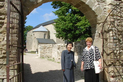 くらい南にドーラさんの主人の実家がある。姑さんと自分の母リディアさんとは仲がいい、という よりかなり親しい関係です。だからこそ日本からの初めての私たちを連れて行くことができたの です。ほこりだらけのエストニアの森の中の道を車は走りました。エンジン不調の車でしたが途 中観光地に寄りながら娘の夫の家に着きました。あたりいったいは実家の土地だという。森の なかにある小さな集落。犬が2頭いました。家も広いが質素な家です。農家の雰囲気。シャワ ーではお湯はちょろちょろとしかでないので体を拭くだけにしました。弟息子の使っていた部屋 で私たちふたりがとまりました。(その弟息子の名前がなんとクリストといいます。)リディアさん はそのドアの廊下に置いてあるベッドで寝ます。カーテンがあったかどうかは覚えていません。 姑さんは木材会社の事務をやっているという人。そこにエスペラントの辞書や教科書が置いて あるのを見ました。そのお母さんもなんとリディアさんの影響でエスペラントをかじったことがあ るらしい。自分からは話さないが私たちの話は理解できて会話は弾みました。