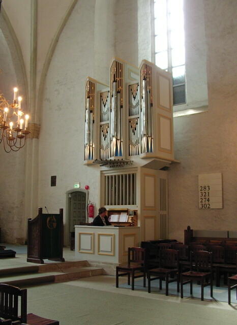 光客として大きな教会のそばを通ると「オルガンコンサート」と書いてあります。ちょうど4時から のコンサートでした。入場券を買って静かに入っていくと、会衆席は祭壇を背にした様で並べて あります。長いすを並べ直したのではなく背もたれが前後に設定できるのです。席に座ると高 いところに位置するパイプオルガンの演奏を見上げることができます。バッハのフーガその他 3曲が演奏されました。 ![]() ![]()