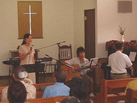 拝の御用をして下さいました。石原先生が邦恵牧師と同じ高校の後輩だという事がわかり、親 しく交わりの時を持つ事が出来ました。礼拝では石原先生ご夫婦がお証ししてくださり、息子さ んと共に音楽の奉仕をして下さいました。 ![]() ![]() ![]()