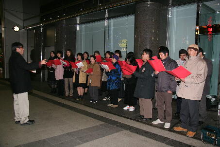ました。夕方から、雪が舞う街角に立ちキャロリングを行いました。一番町アーケード内に歌声 が響きました。 ![]() ![]()
