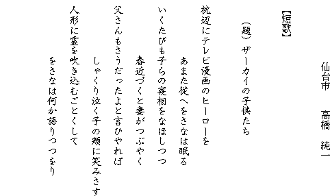 昨(2005)年、作品を50首編み上げて「歌集 ザーカイ」を作り応募したところ、主の恵みに
