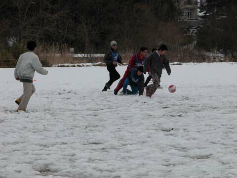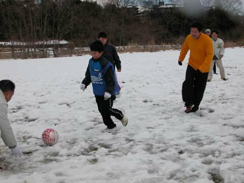 −13でトモチームが勝ちました。写真の通りグランドは見渡す限り雪・雪・雪・・・「雪上サッカ ー?」でも、それでめげる人は一人もいない?(約数名の中年を除く)。足をとられながらもみん な必死で走りました。 ![]() ![]() ![]()