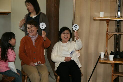 レクリエーションは大学生二人の担当のゲーム大会でした。子供から大人まで、共に楽し