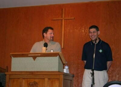 通訳は同じ宣教師団体のリチャード・大上さんです。現役時代の話、クリスチャンになったいき