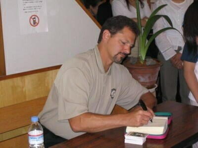 さつ、今の活動についてお証をしていただきました。最後には一人ひとりにサイン入りのカード をくださり、希望者は聖書、色紙、洋服などにサインをしてもらいました。また今度来日する8月 には、教会近くのグラウンドで野球教室を開く予定です。