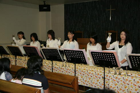 演奏しました。「涙とともに」というグループ名ですが、メンバー全員が笑顔で演奏できました。 来年は新メンバーが加わる予定ですので、尚いっそう練習を重ね、心からの賛美を神様に捧 げて行きたと願っています。