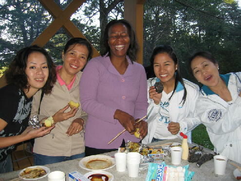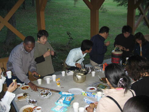 ![]() ![]() 9月24日(日)の午後の英語礼拝の後、岩手山の馬返し登山口にあるキャンプ場施設で、毎 年恒例の焼き芋大会が行なわれました。ぎりぎりまで心配された天候が見事に守られ、さわや かな秋空の下、久々にアウトドアでの交流の時が持たれました。夕暮れ前の短いひと時でした が、前もって兄弟姉妹たちが準備し、先発隊で出掛けて下さった吉田家の皆さんがすでにさつ ま芋、じゃが芋、ナスをとても上手に焼いていて下さり、ソーセージやデザートのマシュマロも皆 で焼きながら、お腹一杯、しっかりアツアツのところを堪能させていただきました。 ![]() ![]() ![]() ![]() の礼拝と盛岡の英語礼拝に来られ、焼き芋大会に今年も参加することが出来、喜んでおられ ました。慌しいスケジュールの中でも、このように楽しく、心身共にリフレッシュされるような幸い な時が与えられ、一同で神様に感謝いたしました。 (文責:中野與子) |