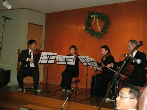 奏の方々を招き、4曲を演奏してくださいました。5曲目は、四重奏をバックに有志で「アーメン コーラス」を歌い ![]() ![]() ![]()
