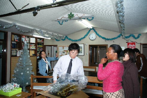 ![]() <JSF活動報告> 11月26日(日)の夕方に、教会内のクリスマスの飾り付けの作業を行いました。毎年色々な 方々に、自由に飾って頂くということをここ数年ずっと続けています。 ![]() ![]() 斬新な、こちらが思いもつかないアイデアで毎年違った飾り方がなされ、とても楽しみな時でも あります。今年も、海外の方達や今年受洗された方、JSFのメンバー達が素晴らしい仕事をし て下さいました。 <その他> 同日、英語礼拝の後で、ハイチ人のアントワン&シエラ夫妻の間に生まれたシェラトニーちゃ んの献児式が持たれました。 ![]() ![]() ルスタディー、祈祷会などに積極的に参加して下さっています。12/24の英語礼拝ではアント ワン兄が初めて説教を担当され、力強くわかりやすく発展的なクリスマスのメッセージを取り次 いで下さいました。 12月23日(土)に合同のクリスマス祝会が持たれました。初めての方々がさらに友人を複数 連れて来られたり、親子、家族、夫婦での参加が今回は目立ちました。我が教会にしては久し ぶりに珍しく、本格的な手作りのペープサートもなされ、好評でした。持ち寄りの御馳走が多く 並び、初めて来られたご婦人方が嬉しそうに沢山召し上がられていたそうで、誘った方も驚い ていました。JSFメンバーによるビンゴ&クイズ大会やゴスペルの発表でも盛り上がりました。 雪が少々降る中、60名余りの方々が集われ、福音をお伝えする機会がこのような形で開かれ 感謝でした。 ゴスペルクラスの働きとして、12月16日(土)は市内の大通りでストリートライブを、12月24 日(日)の夜には岩手医科大学の精神科病棟でクリスマスコンサートを行いました。トラクトや プレゼントを配ったり、短く神様のことをお話したり、希望された方にはお祈りをそれぞれさせ て頂いたりと、今までよりも一歩深く踏み込んだ働きを導いて下さった神様に一同で感謝いた しました。 (文責:中野與子) |