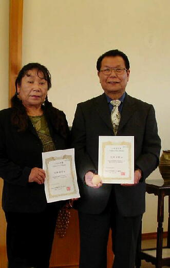 入会式のあとで、イースターのたまごと入会証明証を手にして、近藤安範兄・高子姉