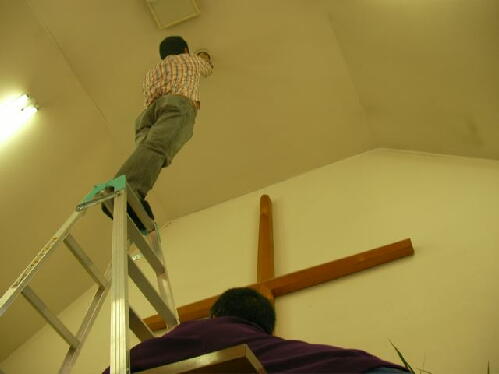 18日 献堂記念礼拝のメッセージ「主の名が置かれる建物」ではプロジェクタによる献堂