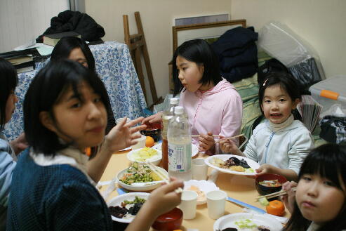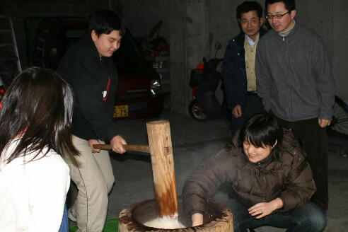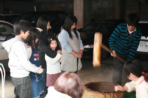 午後は恒例お餅つき大会。約20キロのもち米を、昔ながらの杵と臼でつき、みんなでおいし