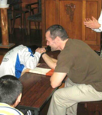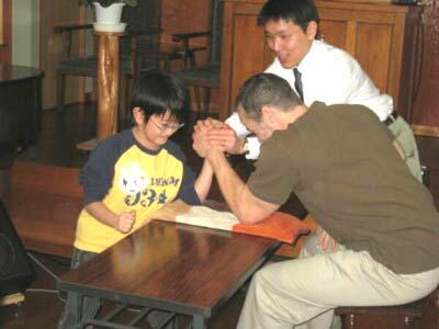 えし、主な仕事としているスポーツミニストリーの話をしてくださいました。礼拝の後、数人の子 供達が腕相撲に挑戦しました。午後は、JSFのメンバーと食事をしながら、交わりの時を持ち ました。 ![]() ![]()