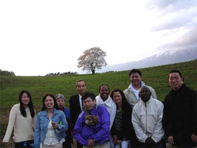 ○4月27日(日)の午後の英語礼拝の後のJSF活動として、昨年のNHK連続ドラマ「どんど晴れ」で有名になった「一本桜」を観に雫石町まで皆で出掛けました。小岩井農場の近くにあるこの場所はもうひとつの観光スポットと化してしまい、この一本の桜とその後ろにある岩手山を見るために、その付近一帯は観光バスや車で大渋滞となっていました。市内の桜は昨年よりも9日早く開花して時期が過ぎてしまっていましたが、こちらの桜はまだ満開状態を楽しむことが出来て良かったです。
