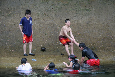 試合後の川遊びでは、お母さん達から、フランクフルト、焼きトウモロコシ、バナナなどの差し入れがあり、皆でおいしく頂きました。怪我もなく、楽しいひと時でした。