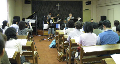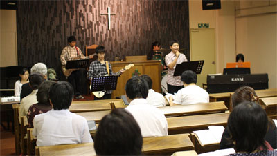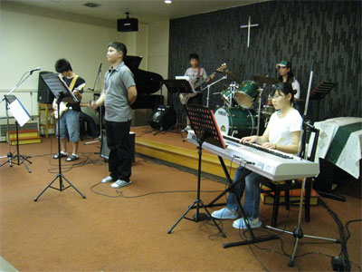 ◇9月7日午後は、Exodusの伝道コンサートでした。中学生6人組のこのグループは結成してまだ間もないのですが、着々と自分達の音楽を作り上げています。9名の新しい方がお見えになり、しばらくの時、賛美に憩われていました。まだ救われていませんが、イエス様は私の罪の為に死んで下さったこと、そのことを歌い続けて行きたいと話していました。受験生もいますが、尚、神様の働きに、向かって行ってほしいと思います。そして、その戦いにも、勝利を与えて頂きたいと願います。