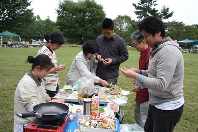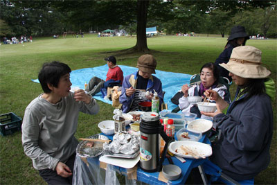 次の日は、近くの公園のサッカー場を借りて、みんなでサッカーをしました。前の日の疲れも取れないまま、中年と呼ばれる人たちも参加です。重い体を引きずりながらも、まだまだ若い者には負けられないと走りぬきました。 この合宿の成果を大いに期待します。