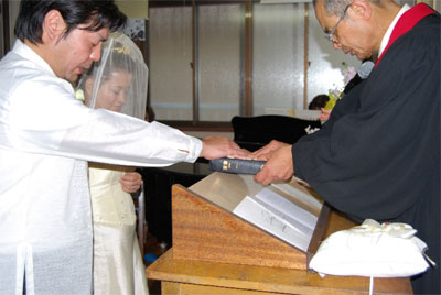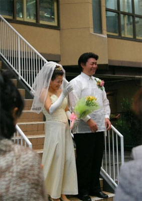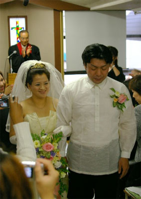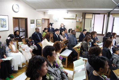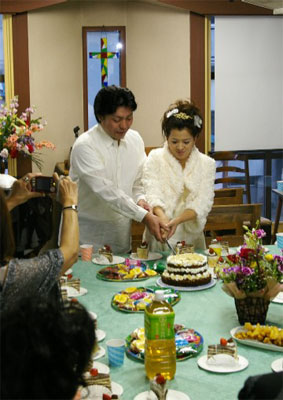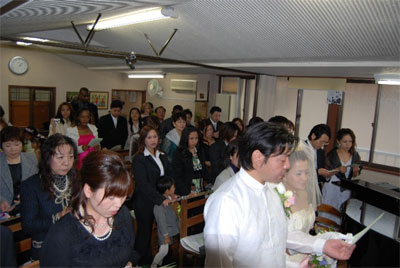 式に出席される方々には、その前に英語礼拝への参加もお願いし、礼拝、結婚式両方、またその後のティーパーティーに於いて、お二人がこれから夫婦として生涯神様に仕えていくことの証しがなされ、伝道メッセージも語られ、ご親族やご友人、職場の方々などの為の特別伝道集会のような時となりました。