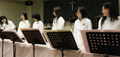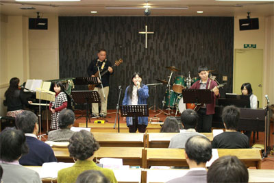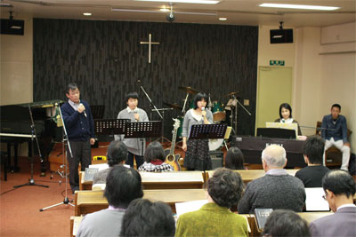◇11月23日今年最後の夜の伝道会は、いつものように、一番町の地で路傍伝動し、兄弟達がご案内をするところから始まり、屋内での集会は、讃美伝道会でした。11、12月の記念の方々のリクエストを頂き、フォルテシモが御用しました。また数多くの讃美からリクエストされ、会堂中に歌声が響きました。救われた記念、誕生日、結婚記念等、どの記念も、神様の豊かな祝福が共にあることを感じ、その事を、教会中が喜びました。この集会も始めて4年が過ぎ、その担当の方の信仰告白も交え、幸いな集会となりました。