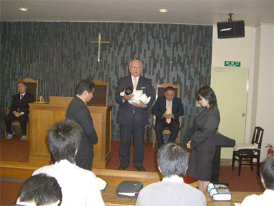 ◇11月2日石井和幸、ミワ兄姉の長女、真実ちゃんの献児式がありました。光明牧師の手にしっかりと抱かれ、ここち良かったのか、声もあげずに、長い祝福のお祈りのうちに式を終えました。豊かな守りと、その成長を祈っております。教会中が共に喜びました。