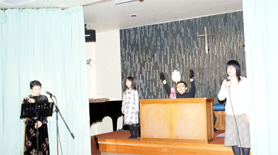 ◇12月14日午前は、毎年行われていますメサイヤや礼拝でした。今年は、第20回記念という事もあり、新しいソロが2曲増え、中学生の姉妹たちが賛美してくれました。また、今年は、メンバーも少し入れ替えがあり、長きにわたり讃美し続けて下さった、恒励会、婦人会のメンバーが引退し、若い方々が新たに加わりました。