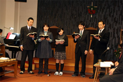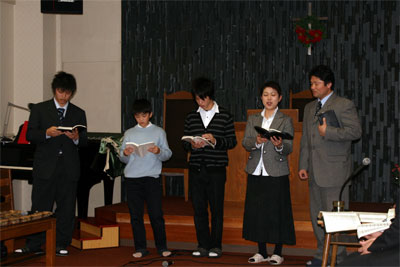 午後は、年末感謝会でした。家族ごとの讃美、また一家の代表がこの一年を振り返り、感謝のお証しがなされました。この教会に与えられた多くの喜びを共に感謝いたしました。私達の願いや戦いは、まだ引き続き来年に持ち越します。しかし、私達にはそこに希望と、確信が与えられます。尚信じて進ませて頂きたいと思います。