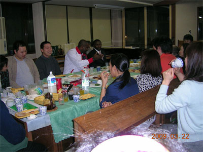 ○3月22日(日)夕方、JSF活動も含めて、この4月にそれぞれナイジェリア、タンザニア、フィリピンに帰国される3家族のために送別会が持たれました。